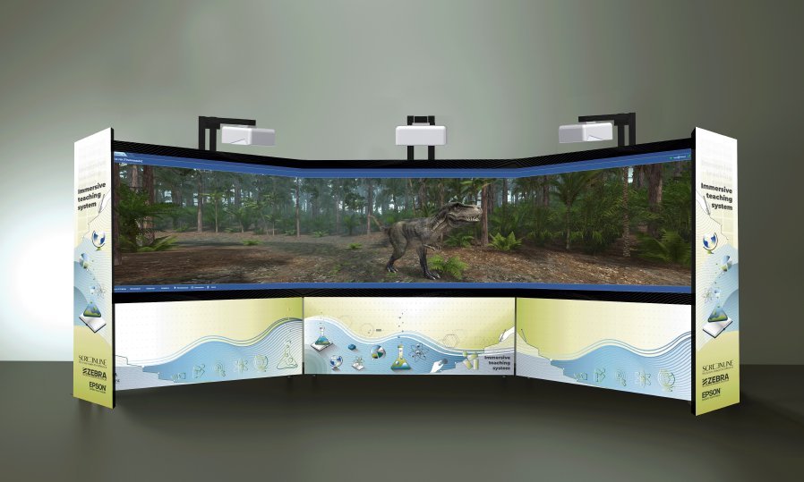 Una superficie di oltre 6,5 m totali di base garantisce un vero effetto immersivo che attrarre gli alunni e contribuisce a catalizzare la loro attenzione sulla lezione e a favorire – anche grazie all’interattività – un apprendimento efficace dei contenuti.
