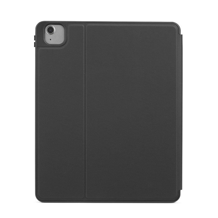 La cover posteriore in TPU flessibile garantisce una protezione extra al dispositivo ed è dotata di un pratico alloggiamento per Apple Pencil. Il rivestimento interno in morbido tessuto antigraffio protegge il display, mentre la chiusura magnetica attiva automaticamente lo schermo quando si apre e lo disattiva quando si chiude, per ottimizzare il consumo energetico.