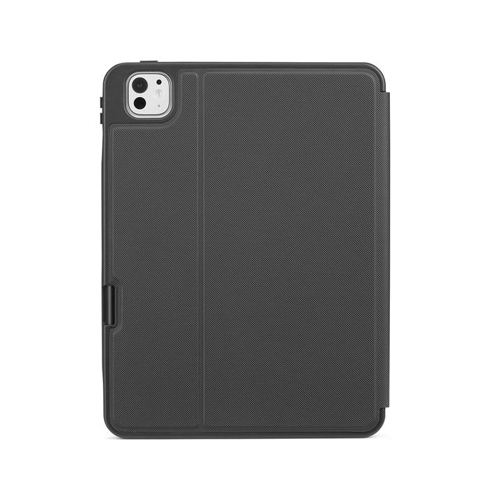 La cover posteriore in TPU flessibile garantisce una protezione extra al dispositivo ed è dotata di un pratico alloggiamento per Apple Pencil. Il rivestimento interno in morbido tessuto antigraffio protegge il display, mentre la chiusura magnetica attiva automaticamente lo schermo quando si apre e lo disattiva quando si chiude, per ottimizzare il consumo energetico.