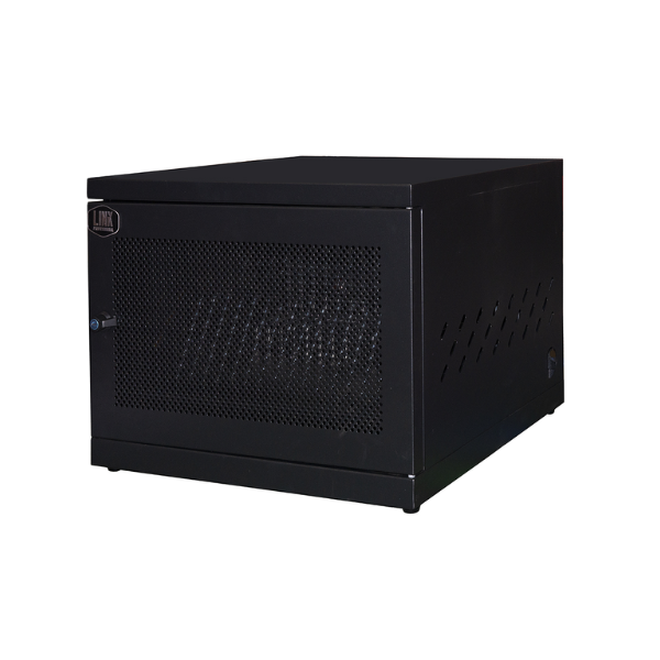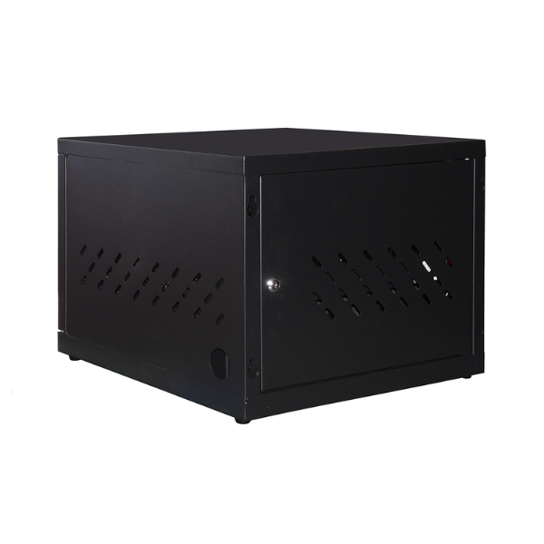 L’armadio è in acciaio, assicura la protezione dei dispositivi interni, e ne permette l’areazione grazie alle fessure laterali e alla porta grigliata
