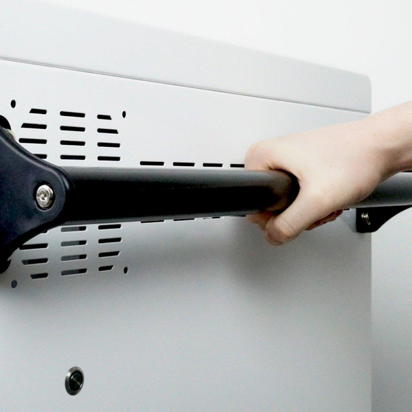 Quattro ruote piroettanti e maniglione singolo in plastica per lo spostamento dell’unità