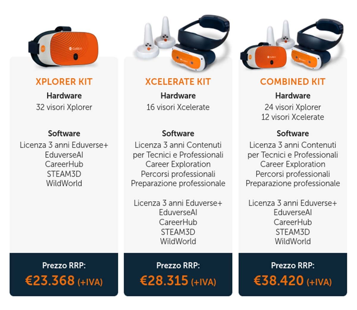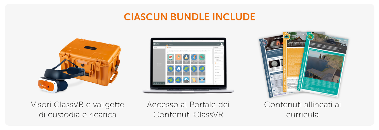 ClassVR offre oltre 300.000 risorse VR/AR pronte all’uso, allineate ai curricula degli istituti professionali e tecnici.
