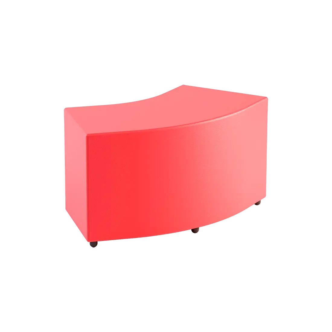 Seduta morbida angolare a 45°, struttura interna portante in pannello di particelle di legno a bassa emissione di formaldeide (Classe E1) con piedini fissi in pvc nero, imbottitura in poliuretano espanso ad alta densità spess. 10 mm (a scelta ignifuga CAT 1IM), rivestimento in similpelle (a scelta ignifuga Classe 1) disponibile in sei colori.