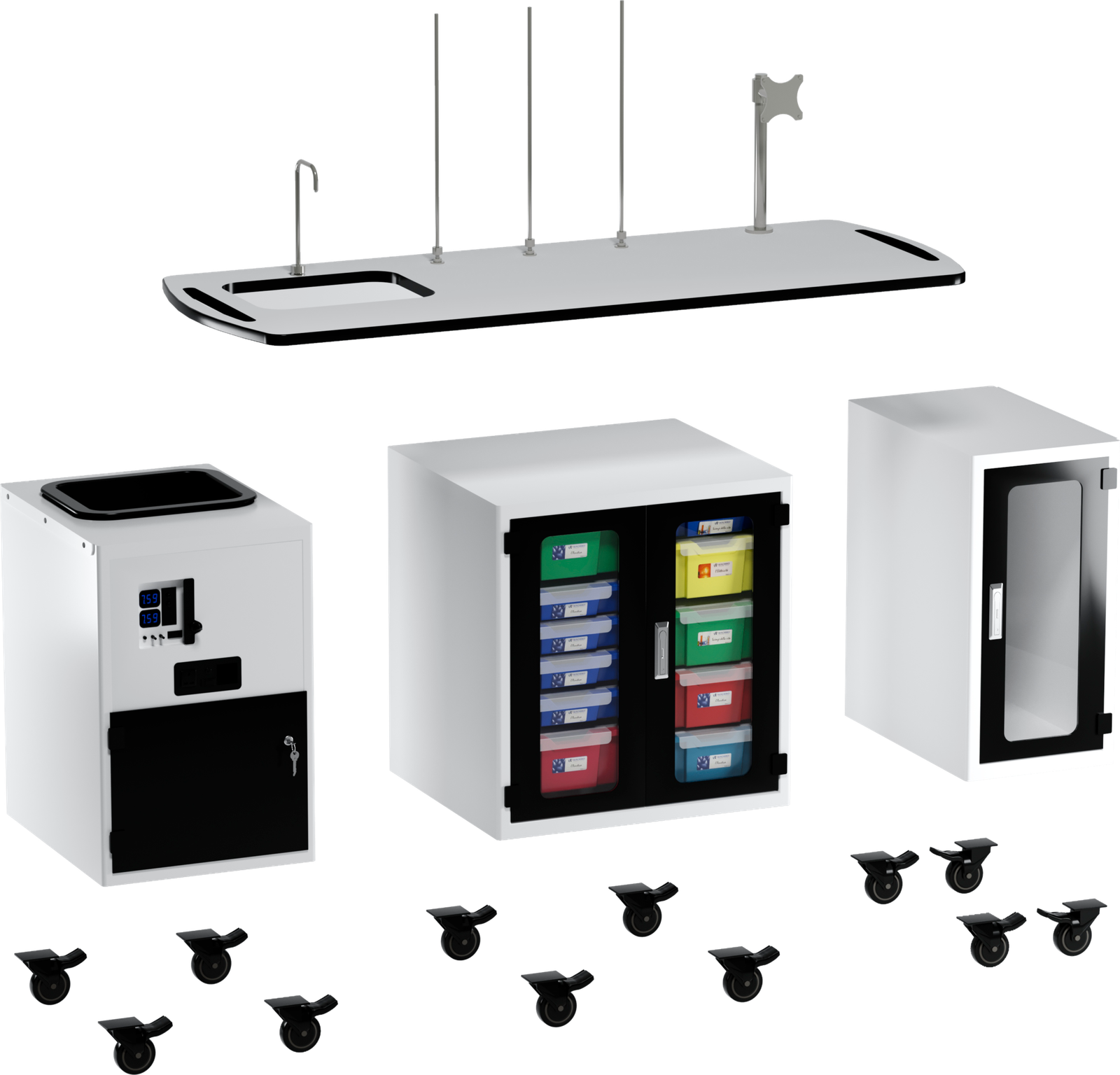Questo modulo rende il laboratorio scientifico mobile Sciencebus uno strumento all in one con il quale approcciare esperimenti tradizionali, sfruttando anche le potenzialità del digitale nella fase di acquisizione e condivisione dati. Il modulo laterale con ricarica tablet è dotato anch’esso di 4 ruote piroettanti con freno.
