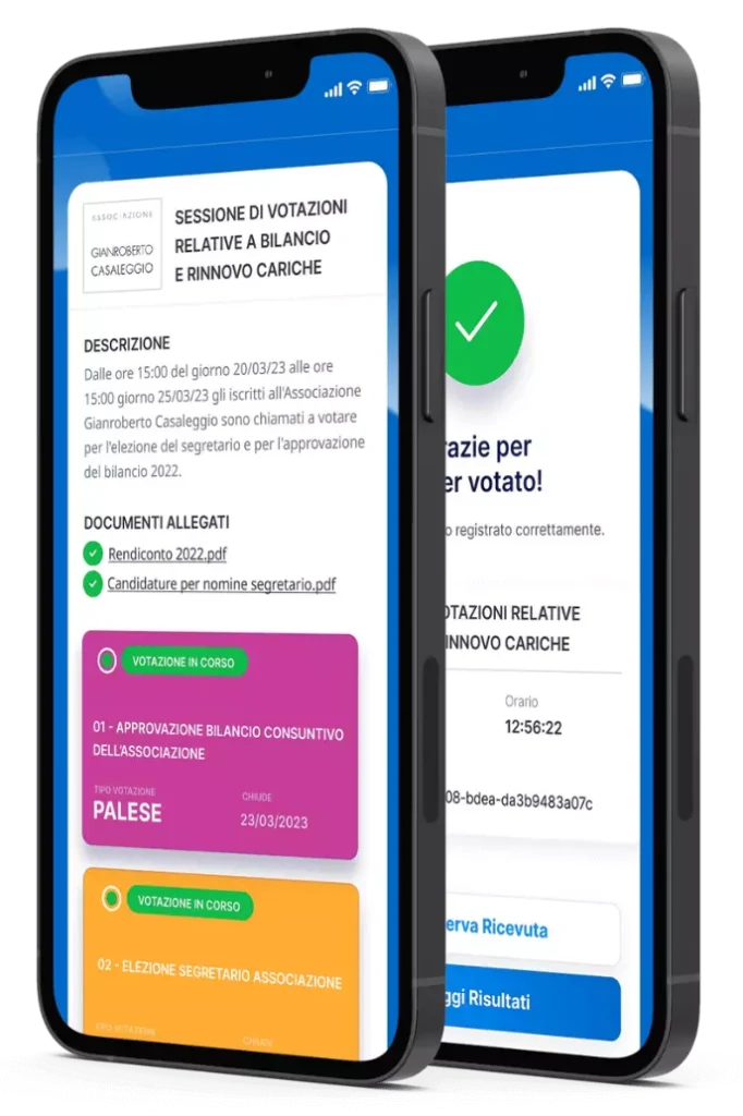 L'utente ottiene una ricevuta univoca di voto che conferma la correttezza e l’immutabilità dello stesso. Questo garantisce la sicurezza e l'integrità del processo elettorale.